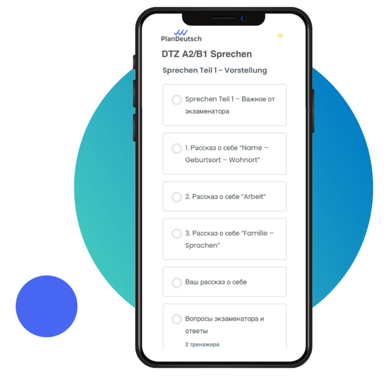 Курс для тех, кто готовится к части Sprechen на экзамене DTZ A2/B1. Он включает тренировку рассказа о себе, описания …